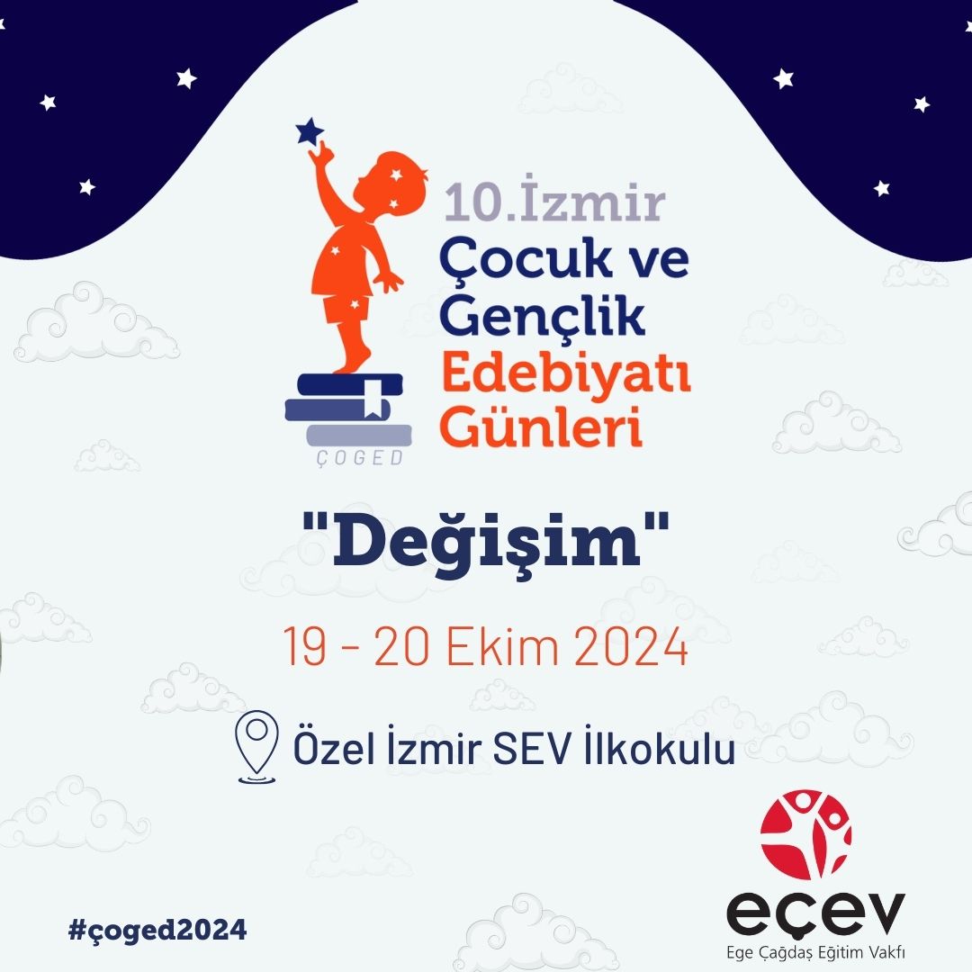 2024 yılında onuncu kez düzenlenecek İzmir Çocuk ve Gençlik Edebiyatı Günleri 19 – 20 Ekim tarihlerinde “Değişim” temasıyla Özel İzmir SEV İlkokulu’nda gerçekleşecektir.